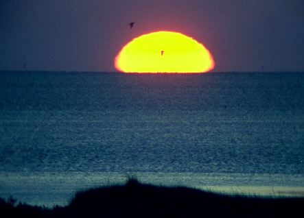 Two sunsets over the Gulf of Mexico from Naples, Florida The first is at 1500mm; the second, 450mm. |