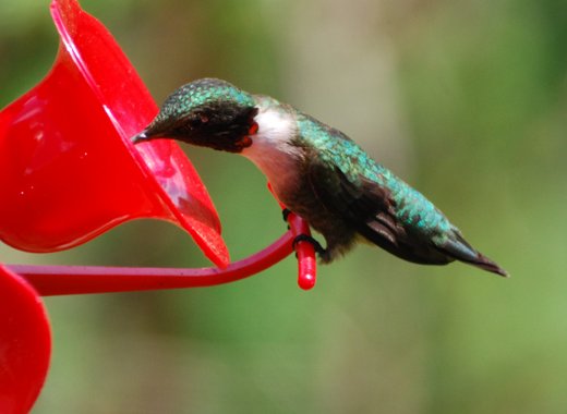 | Good shots of a male (L) and a female (R) Ruby-Throated Hummingbird