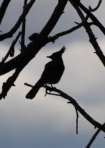 New!A Steller's Jay, a relative of the Blue Jay found west of the Rockies.