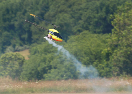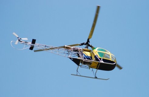 An amazing 3-D helicopter. Note the exhaust showing the direction the helicopter is flying: