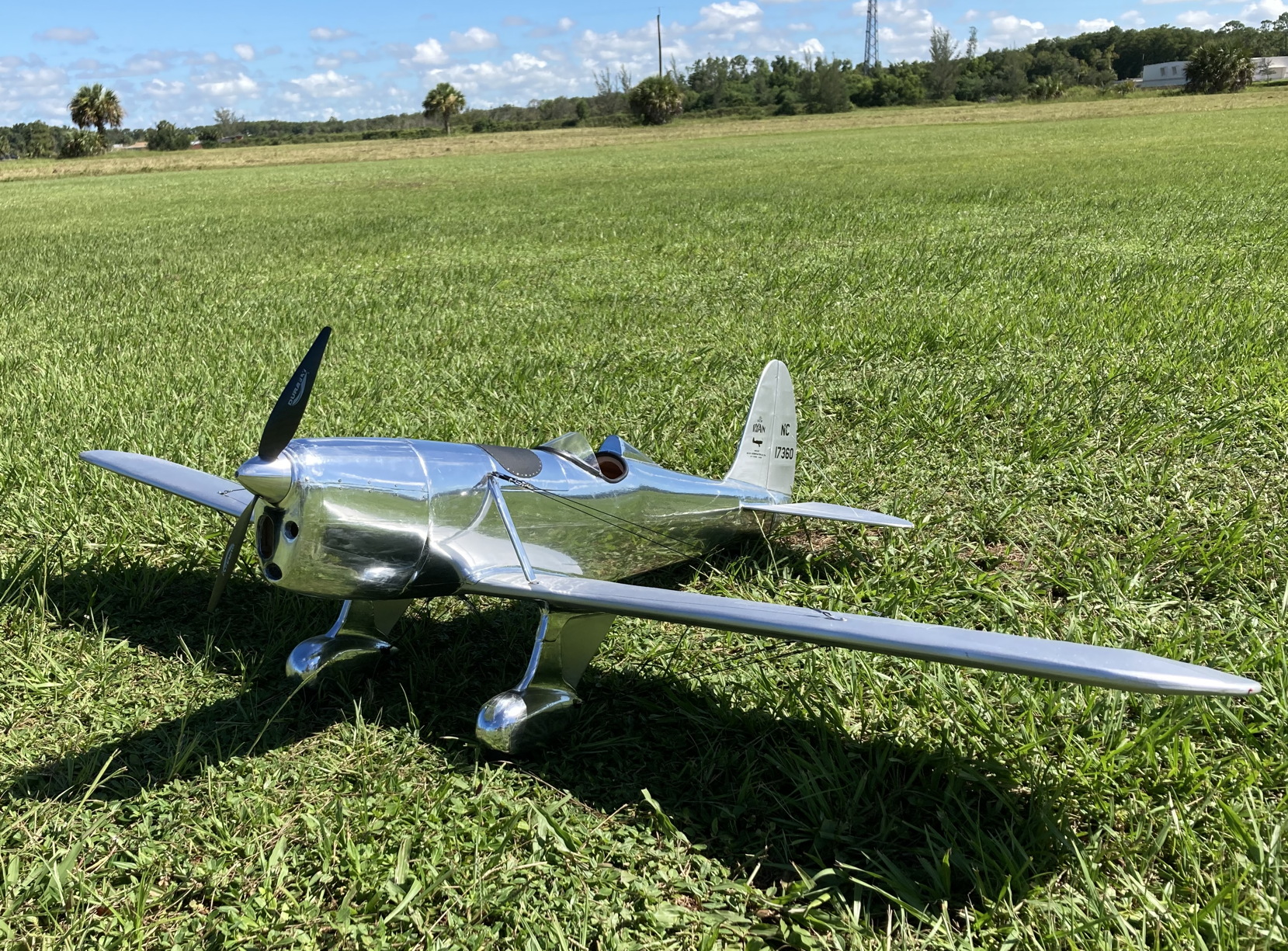 Globe Swift Electric motor, retractable landing gear. Finished with Polyspan and dope. Build photos here |