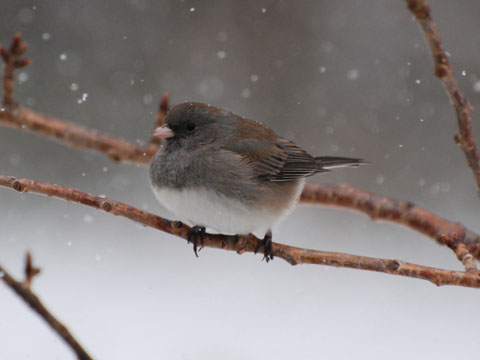 Dark-eyed Juncos. The female on the right is a different color. |