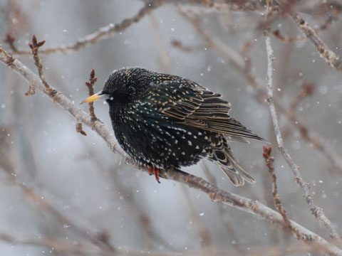 European Starlings in winter dress. |